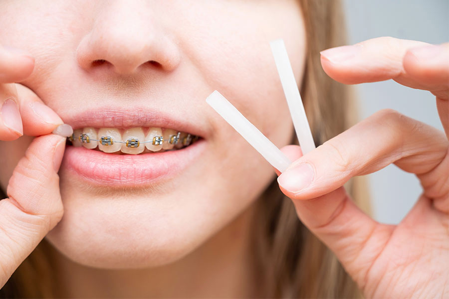 - Presiona suavemente la cera sobre el bracket o alambre que molesta